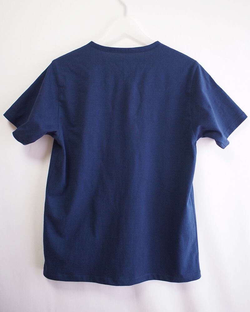 WIロゴを端ロックした糸はTシャツボディに合わせてダークブルー、ダンガリーのジャガード柄はほんの少しだけ確認できます
