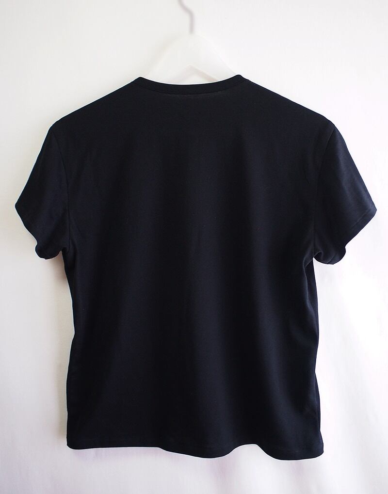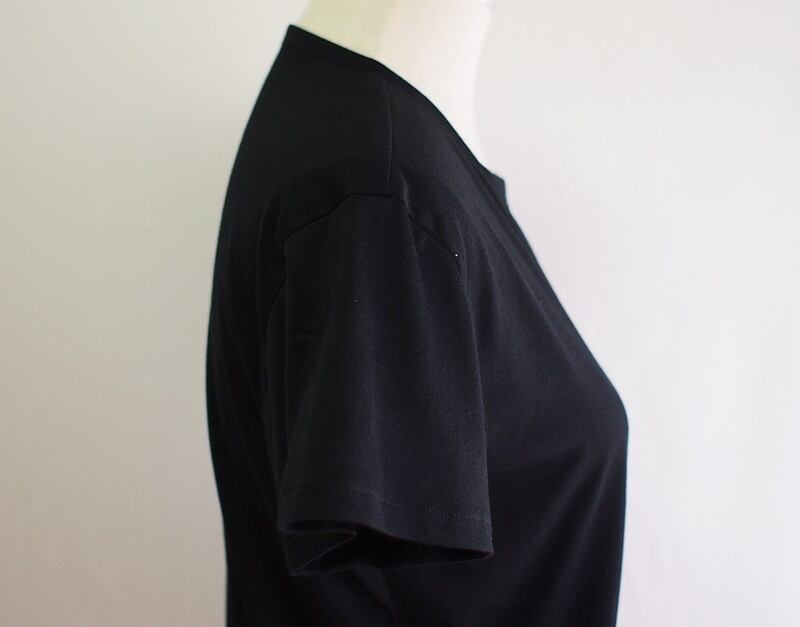 先日ご紹介した「ギザコットン 50/2天竺 アシンメトリーネックライン Tシャツ ブラック フリーサイズ」