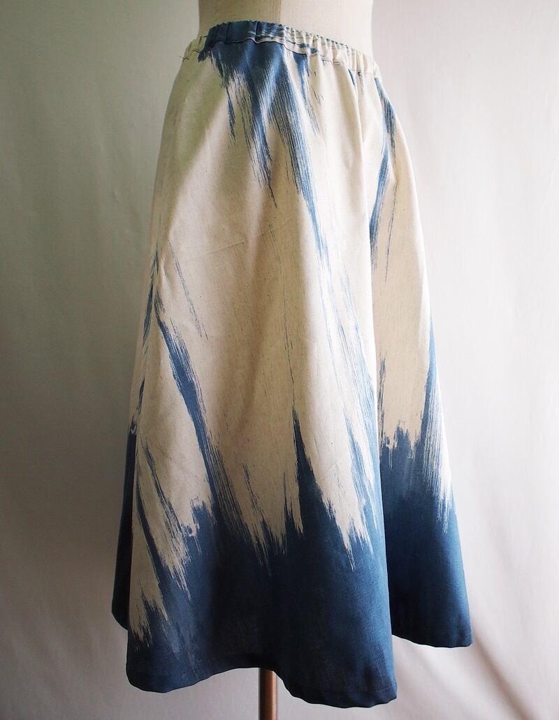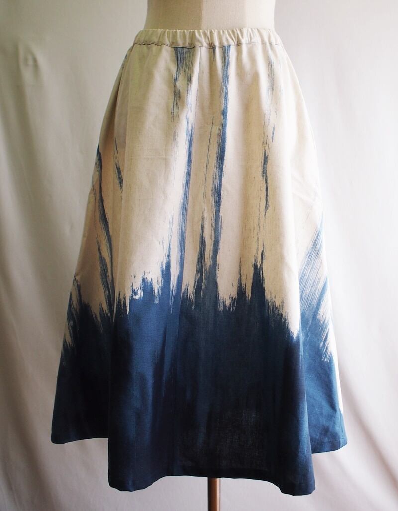 セール75%オフ!たった一つの…レディス★綿麻シーチング★ディップダイプリント★イージーフレアースカート★フリーサイズ★エクリュ×インディゴ