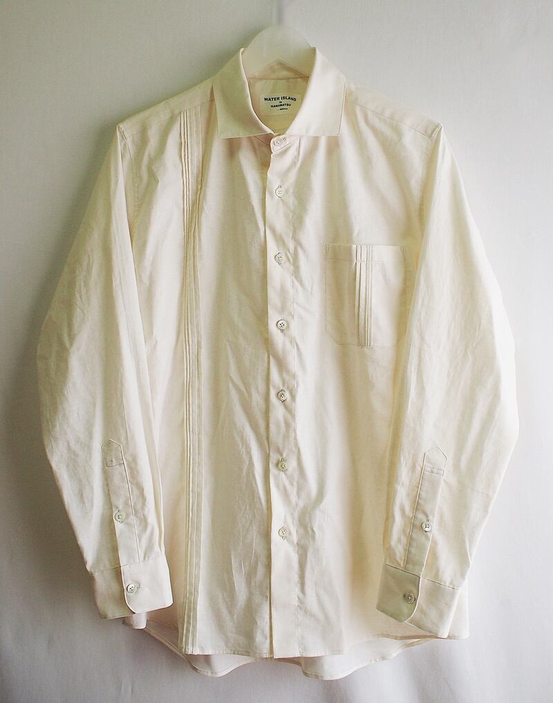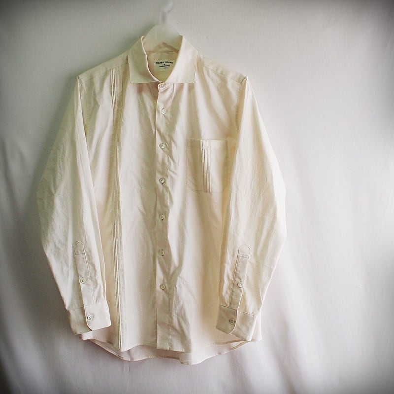 綿シーチングにピンタックを入れたカジュアルなワイドカラーシャツ