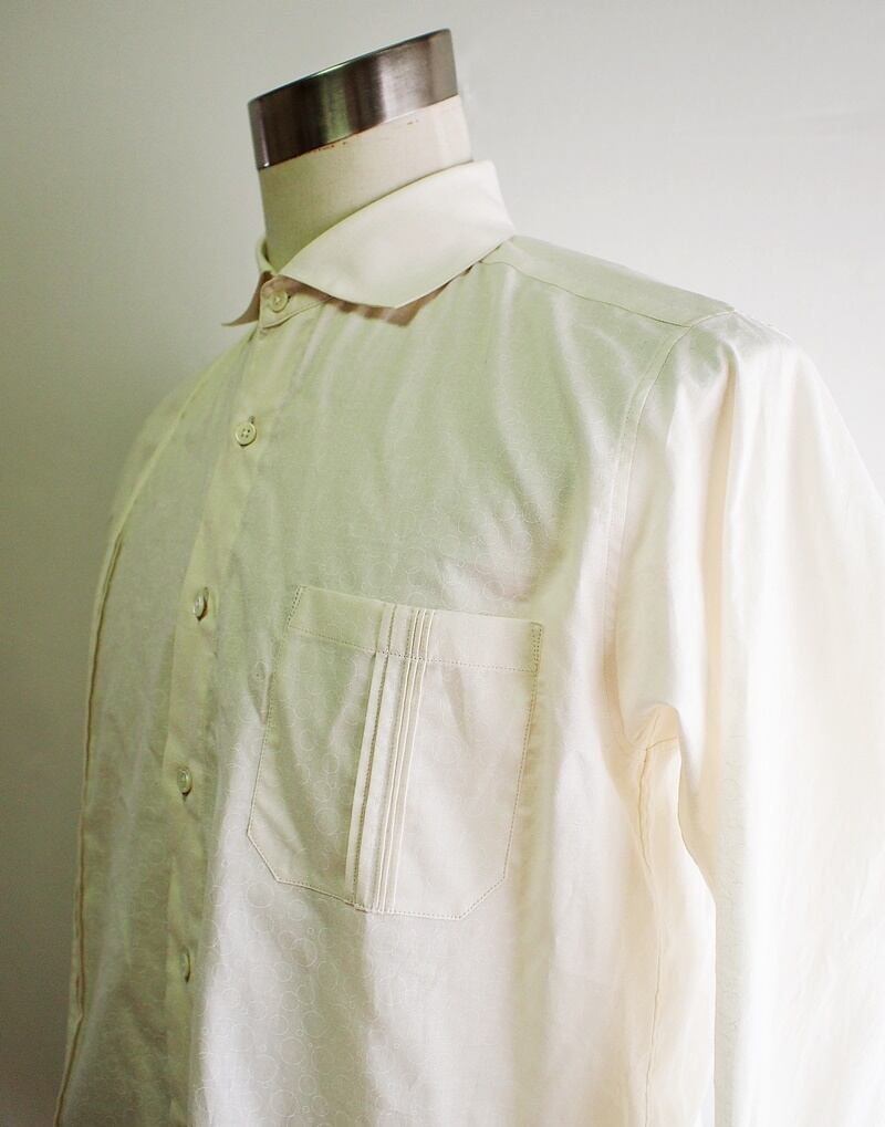 セール75%オフ!たった一つの…メンズ☆綿シーチング☆サークルラインプリント☆ピンタック☆ワイドカラーシャツ☆Lサイズ☆エクリュ
