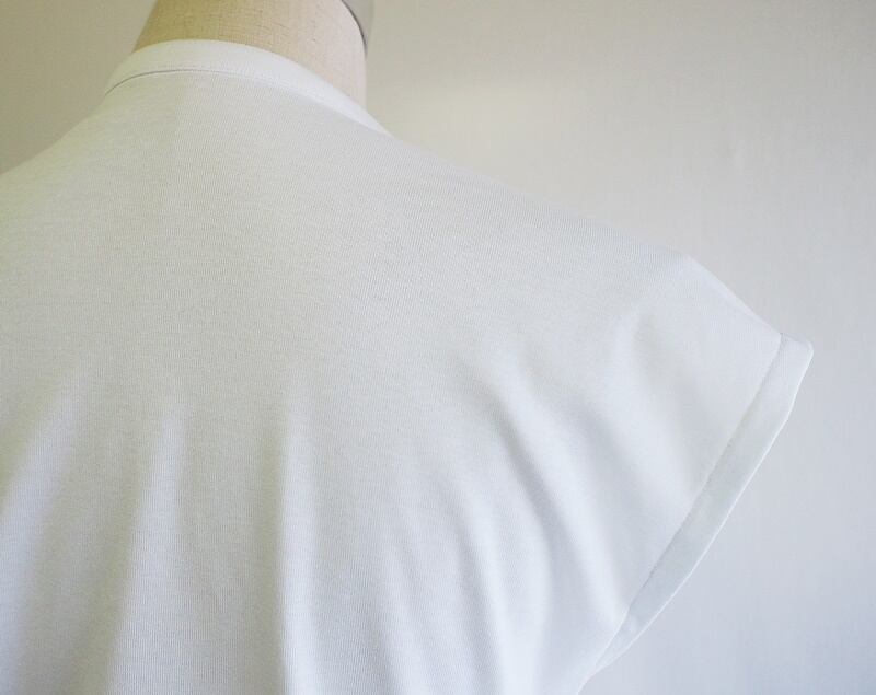 コチラと同じ素材をボディに使用、オーガニックコットンの60/2糸を繊細にリブ編みしたフライスジャージー