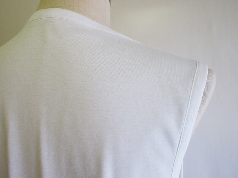 つい先日にご紹介した「オーガニックコットン 60/2フライス WIロゴ アシンメトリーネック フレンチスリーブT」