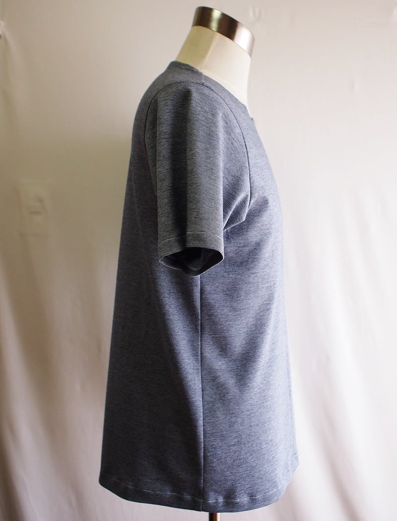 使用した生地は綿100%のポンチと言う素材、両面機と呼ばれる特殊な機械で表裏を同時に編んだダブルジャージー