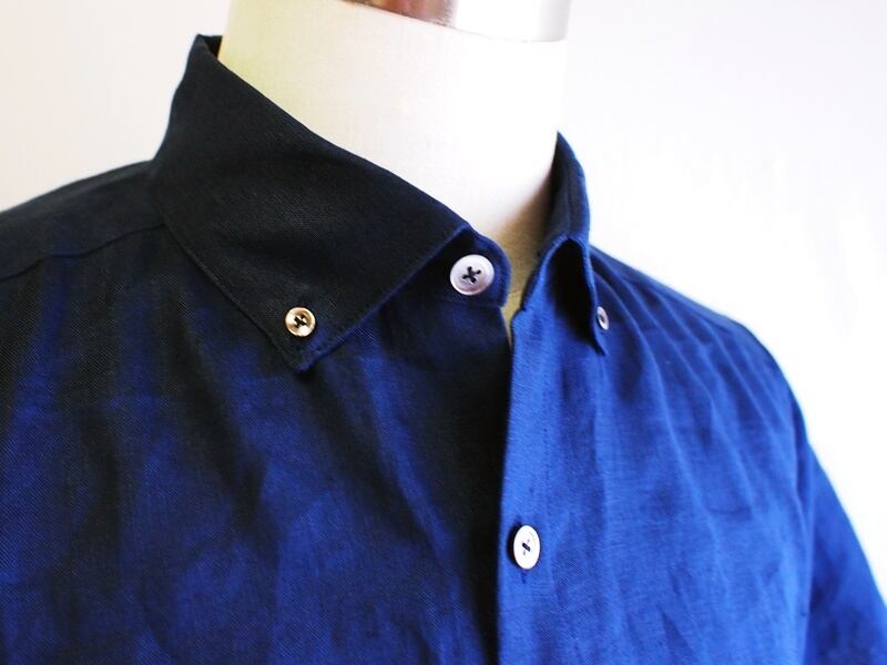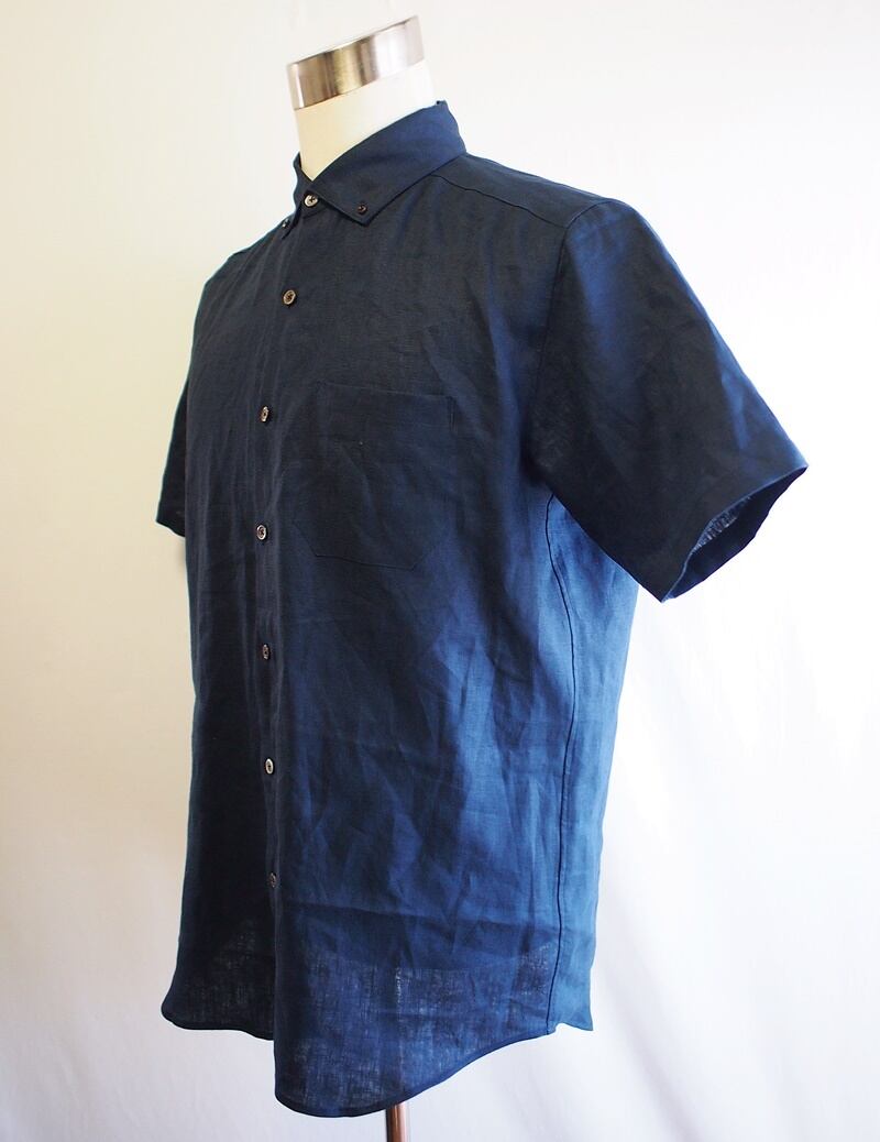 フレンチリネンを使ったシンプルでベーシックな半袖のボタンダウンシャツ
