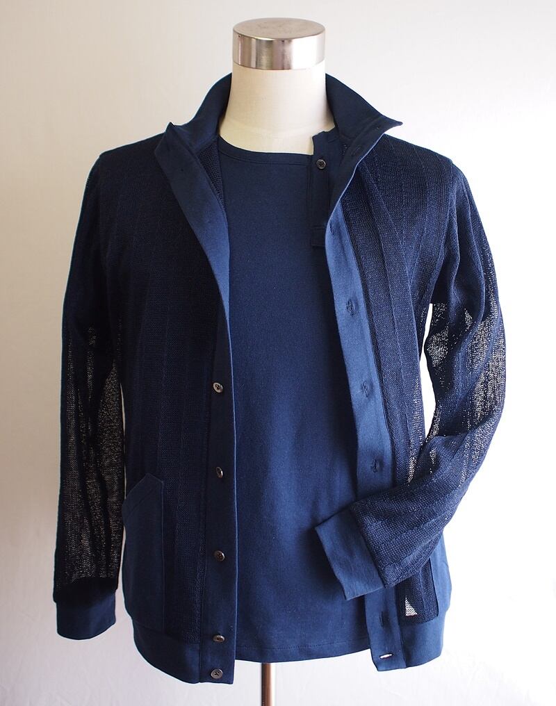 使用した17/-天竺は綿100%で色合いはダークブルー、サラッとした肌触りで柔らかな天竺ジャージー、多少のハリコシ感がある素材