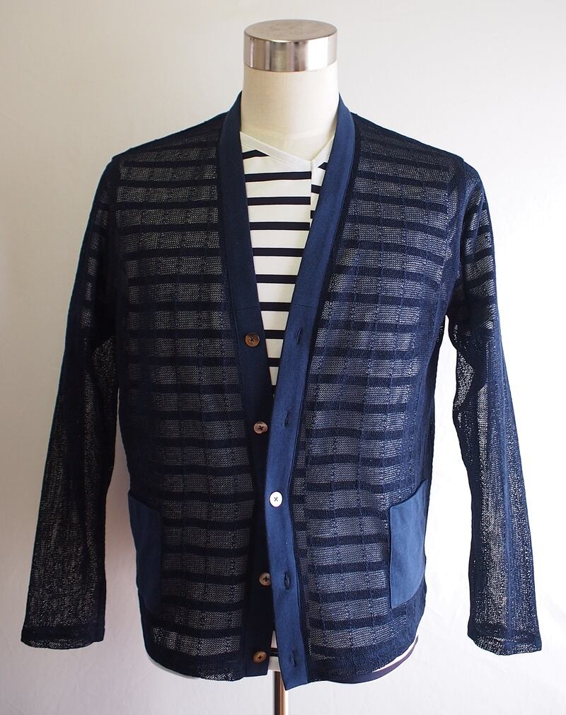 白い部分が2㎝幅で濃紺が1㎝幅のボーダー、綿100%