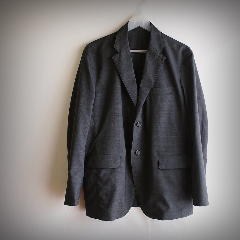 ノッチドラペルで2つボタン、ベーシックなデザインのテーラードジャケット