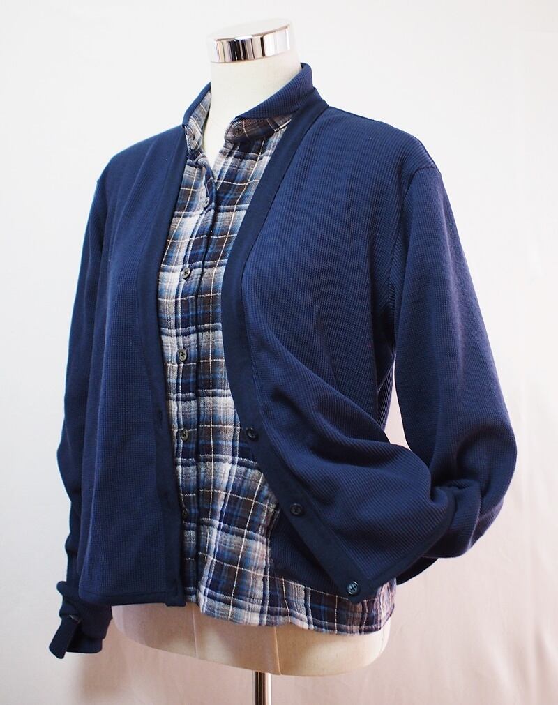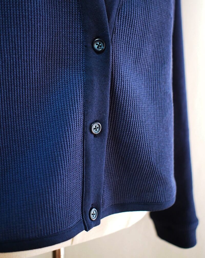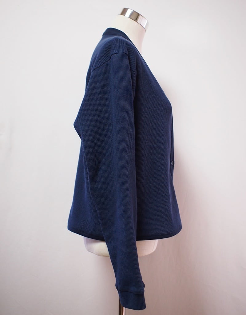 気軽に重ね着出来て、ライトアウターとしても使えそうなライトワッフルのVネックカーディガンです。