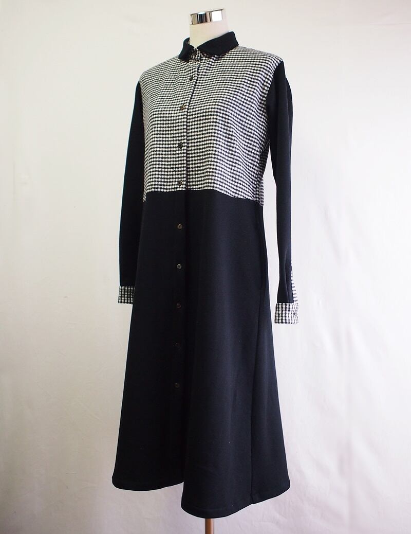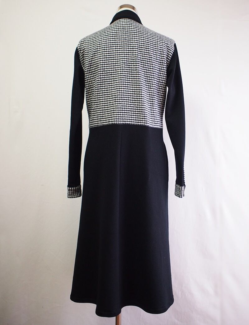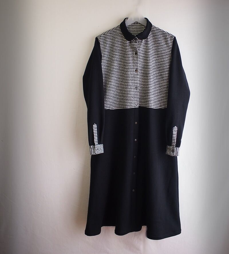 上衿とスカート部分、袖に真っ黒なミニ裏毛、前後身頃と台衿、袖カフスへ千鳥格子のフランネル