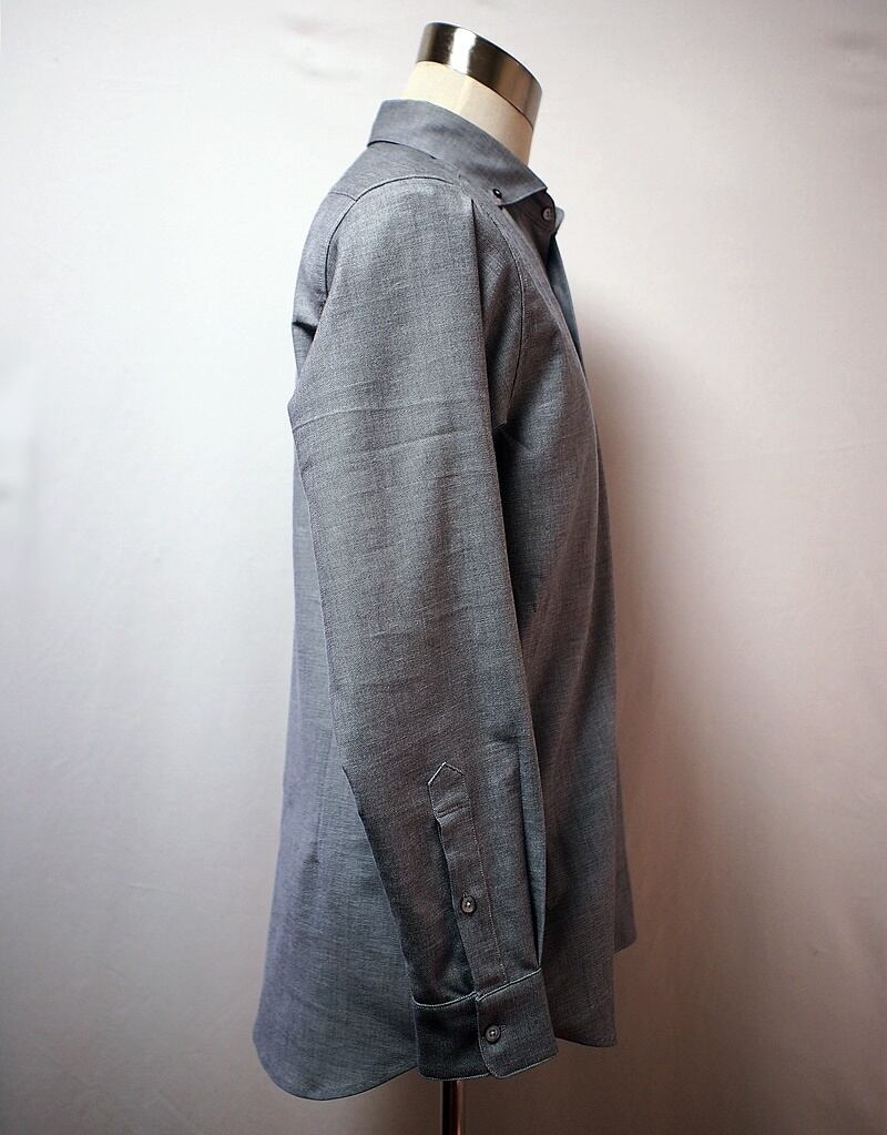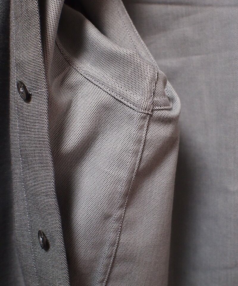 後身頃の左右にダーツを入れてウエストから腰にナチュラルフィット、メンズシャツらしい安定感ある肩ヨーク切り替え