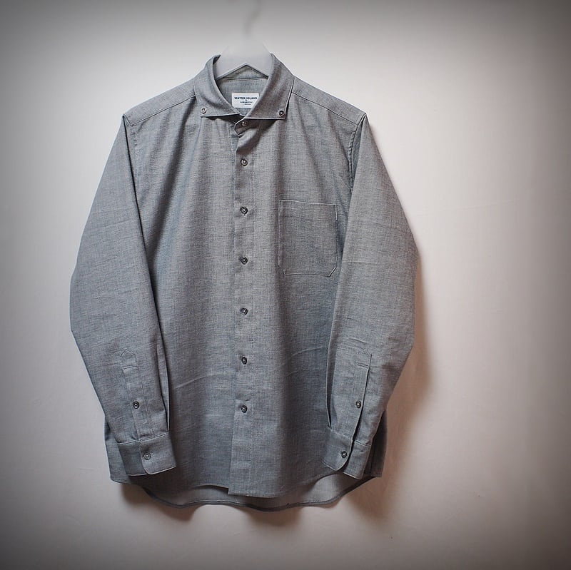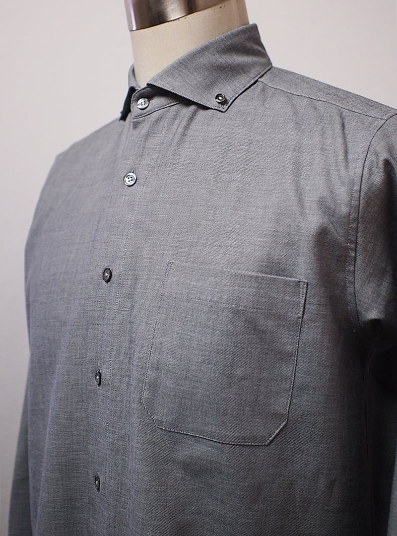 一般的なオックスシャンブレーよりもやや厚手の生地で肌寒さ感じる冬から春に着て欲しいワイドカラーボタンダウンシシャツです。