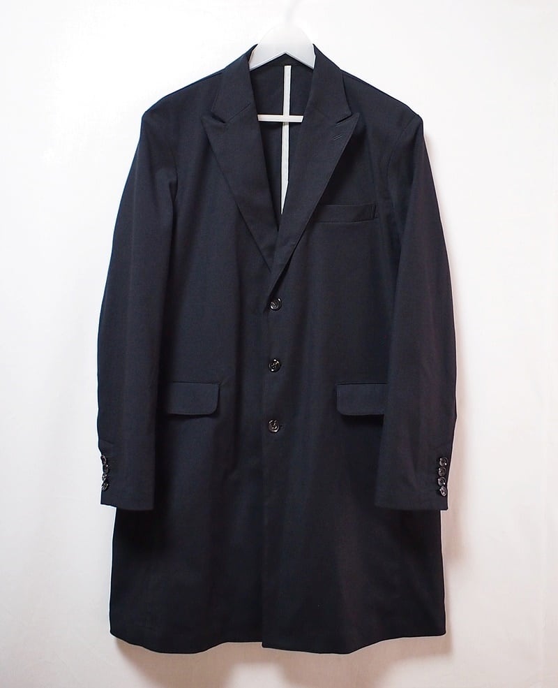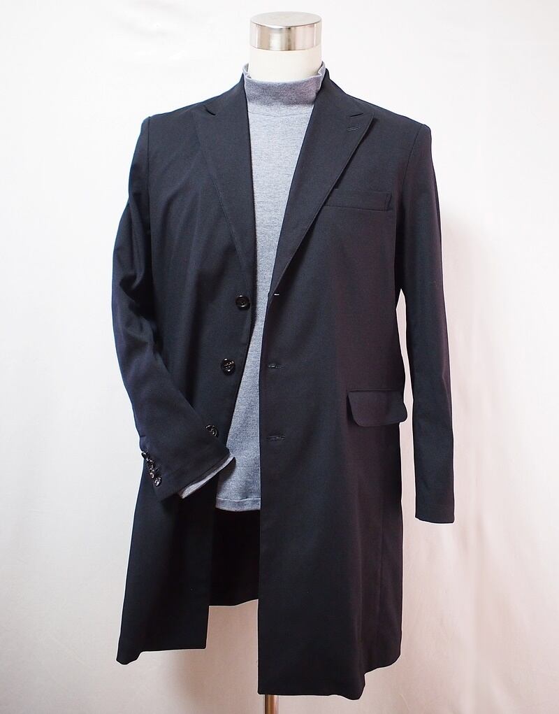 セール70%オフ!たった一つの…メンズ☆C/Puストレッチキャンバス☆ピークドラペル☆チェスターコート☆Lサイズ☆ダークネイビー
