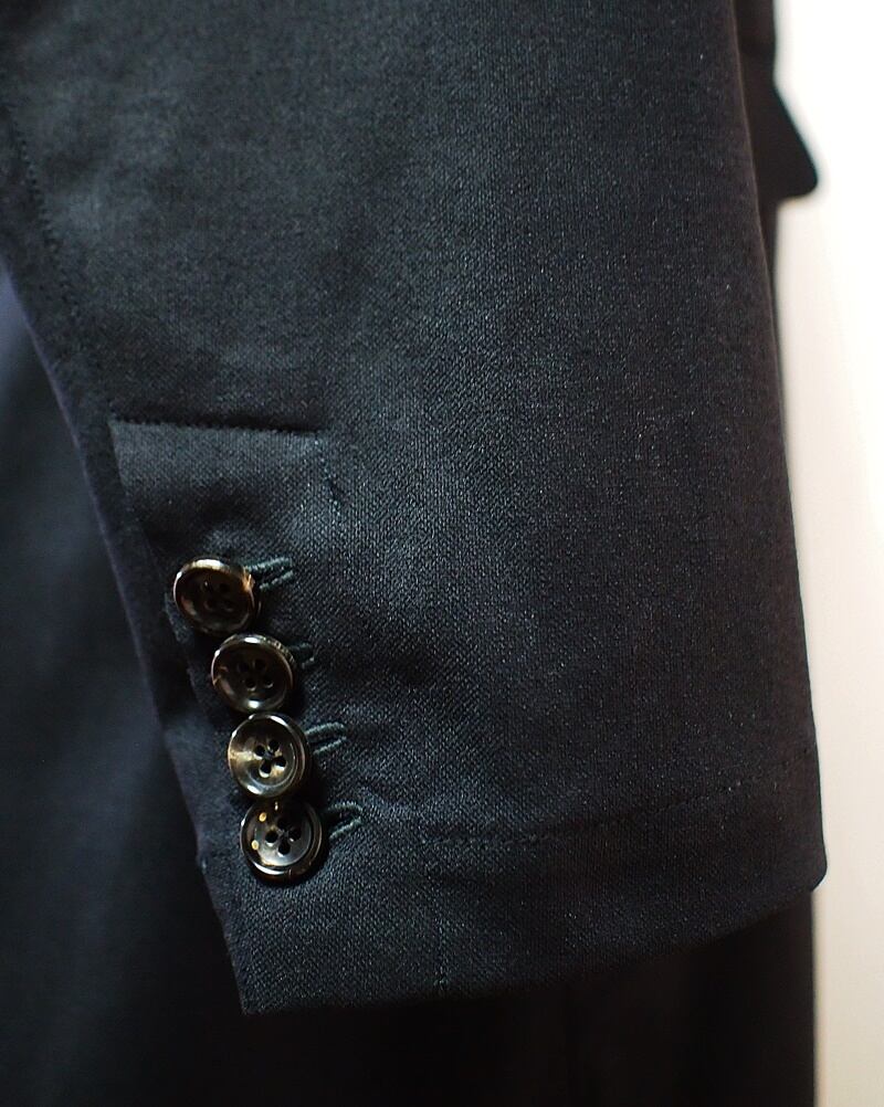 後中心裾にはセンターベント、袖開きは4つボタンの本切羽