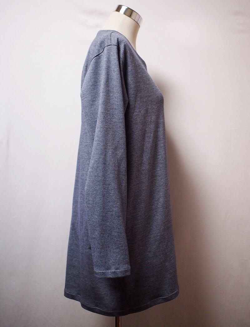 遠目には杢調、無地のように見えるミジンコボーダーのラウンドネックチュニックT