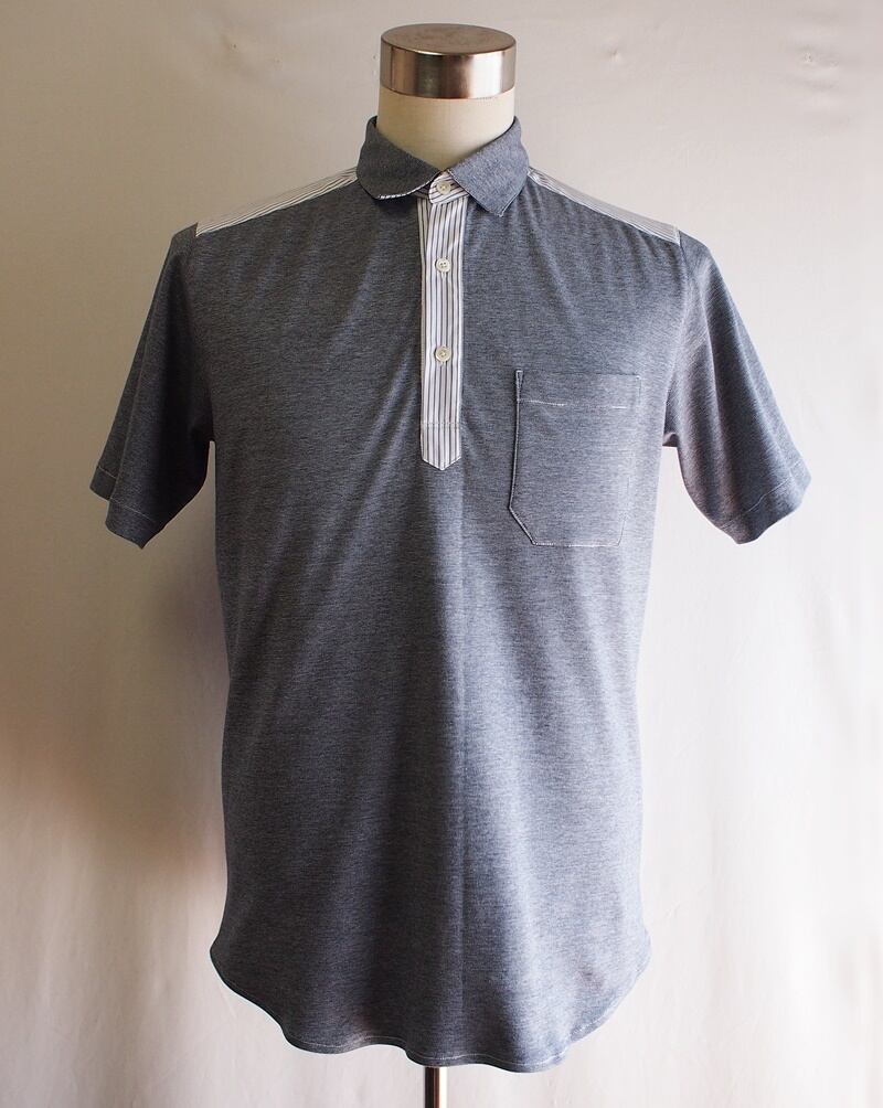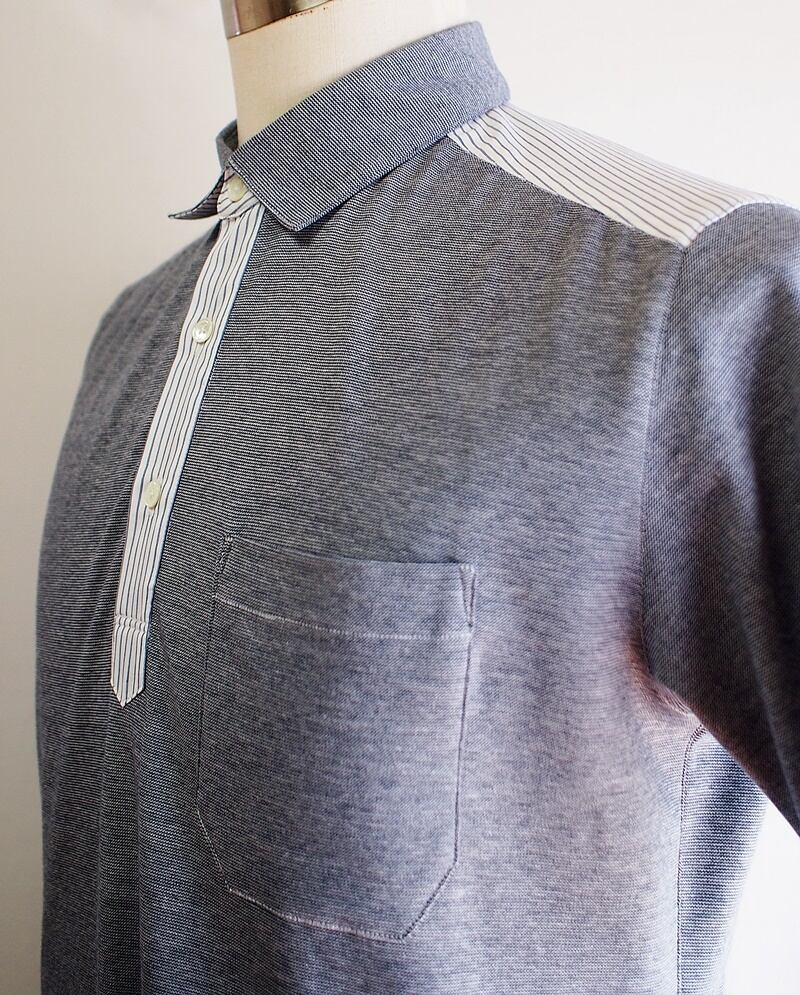 こちらと同じ二つの素材を引き続き使用した半袖のプルオーバーシャツ