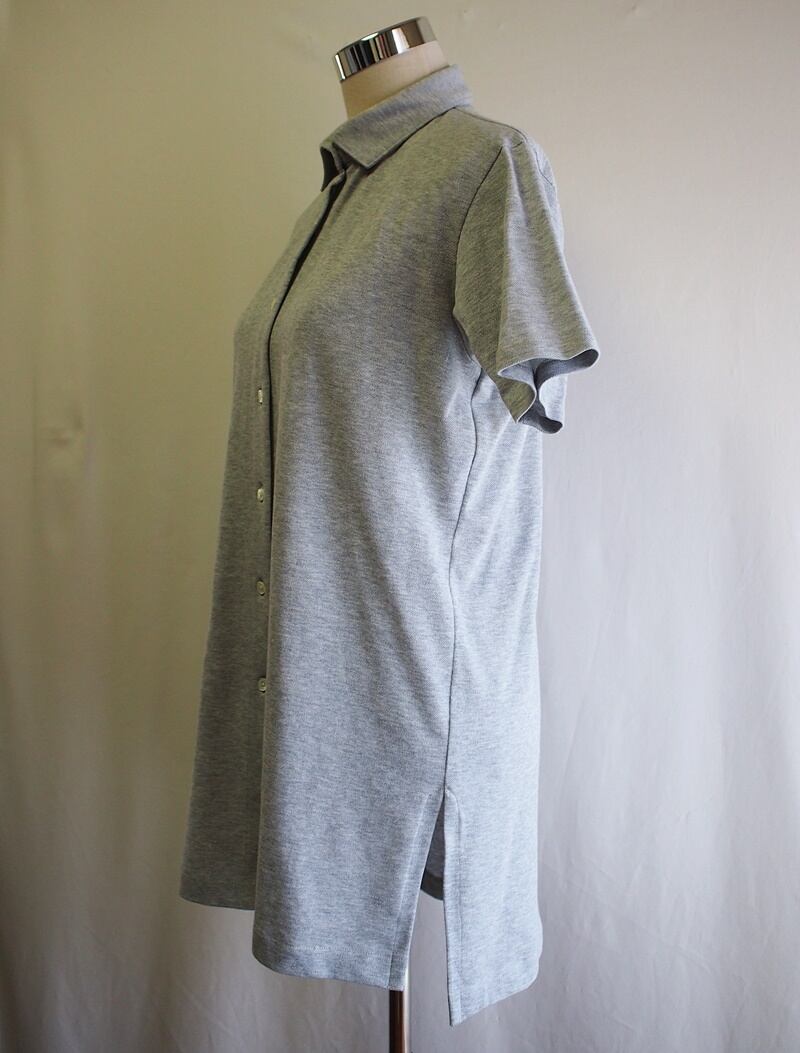 セール60%オフ!たった一つの…レディス★ストレッチ鹿の子★ショートスリーブ★レギュラーカラー★チュニックブラウス★フリーサイズ★Topライトグレー