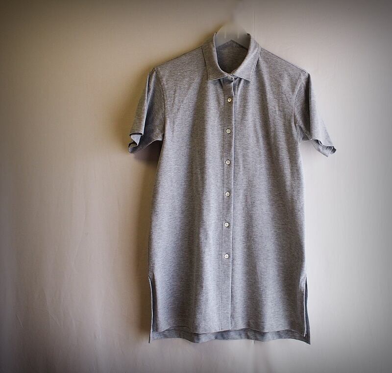 肩幅42㎝で袖丈19.5㎝のショートスリーブ、スッキリした身幅は脇で49㎝、裾で52㎝、着丈は81㎝
