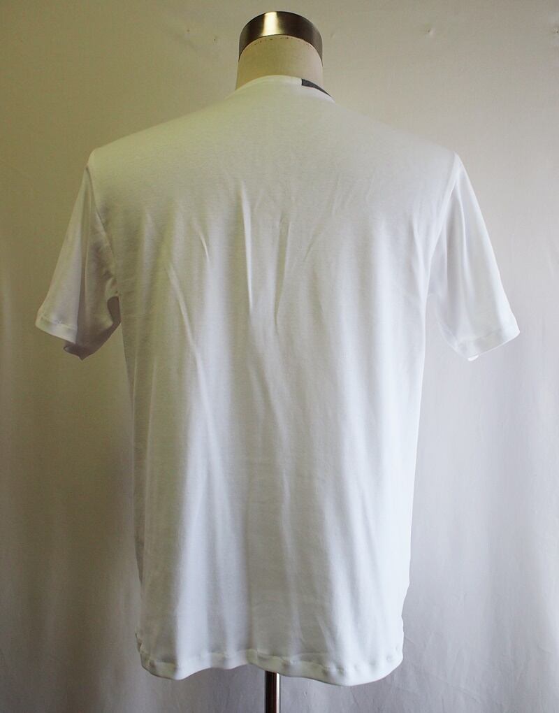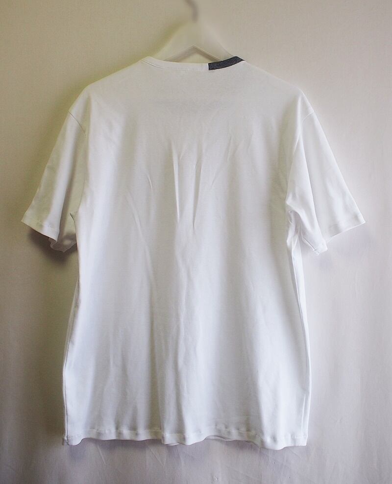 セール50%オフ!たった一つの…メンズ☆オーガニックコットン☆60/2フライス☆WIロゴアップリケ☆バイカラー☆クルーネックT☆Lサイズ☆ホワイト