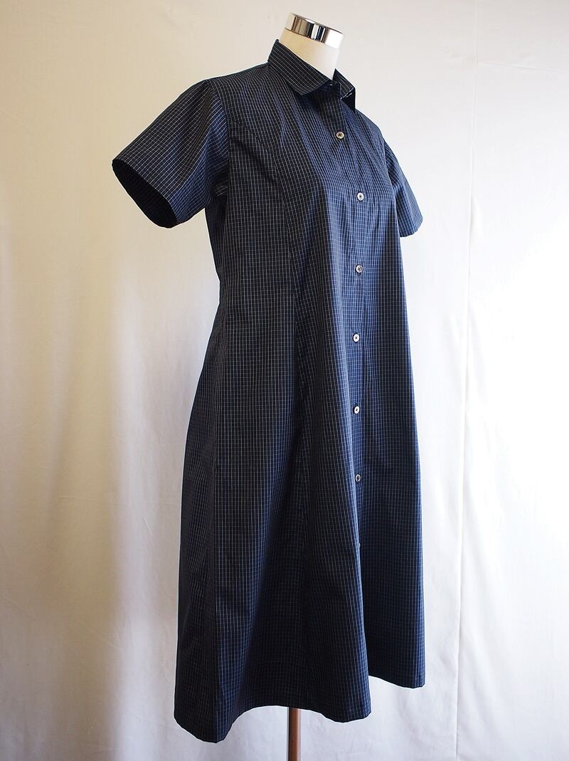 セール30%オフ!たった一つの…レディス★綿ブロード★ミニウインドウペンチェック★ショートスリーブ★パネルラインワンピース★フリーサイズ★ネイビー