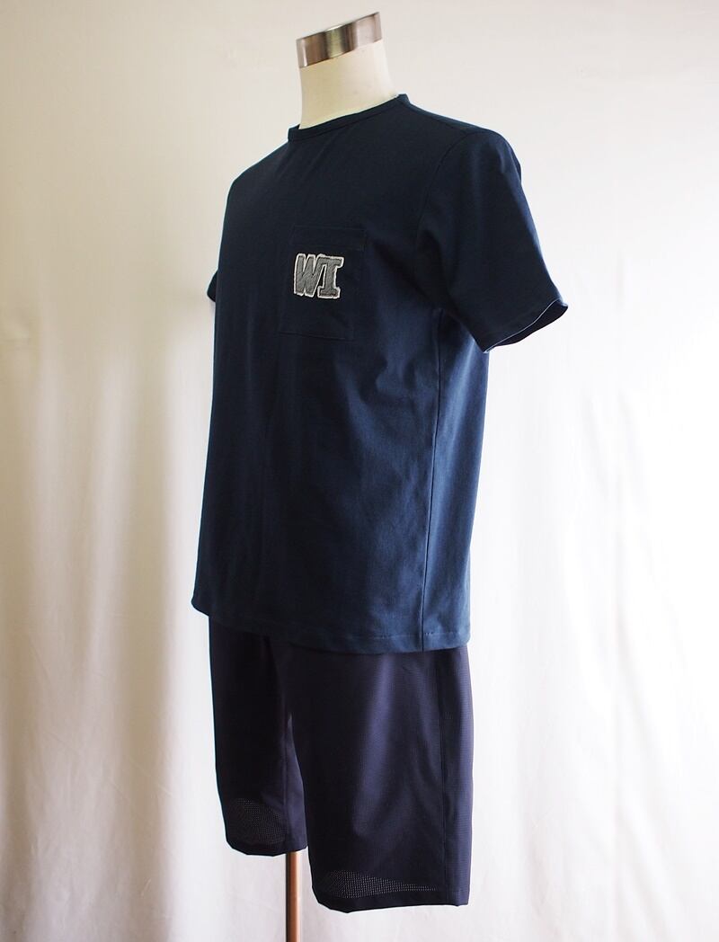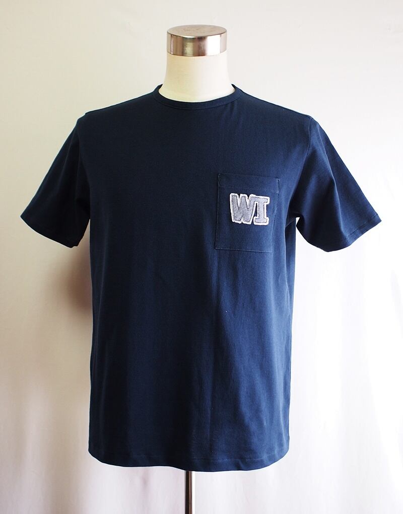 シンプルでベーシックなクルーネック、WIロゴアップリケのポケットT