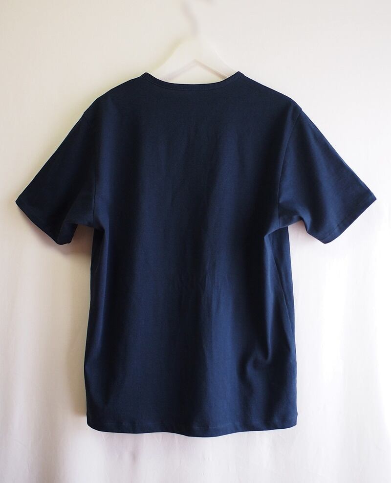 セール40%オフ!たった一つの…メンズ☆オーガニックコットン☆17/-BD天竺☆クルーネック☆WIロゴアップリケ☆ポケットT☆Lサイズ☆ネイビー