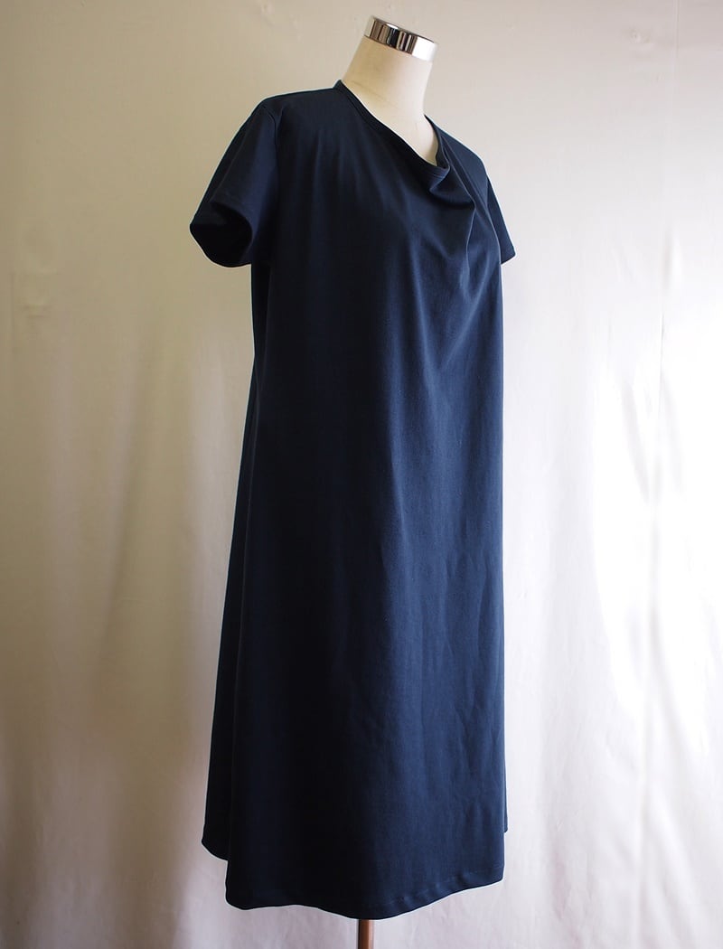 しっかりとした素材感でサラッと軽い17/-BD天竺を使用したドレープネックのプルオーバーワンピースです。