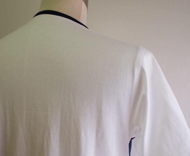 メイン(白)に使用したのは綿100%の20天竺、やや薄手で通気性が良く柔らかな肌触り、キレイ過ぎないナチュラルな表情のジャージ素材