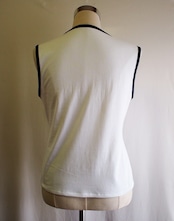 衿ぐりと袖ぐりバインダーがネイビーでのバイカラー、ネイビーで挟み込んだバインダーは1㎝幅、ホワイトベースにクッキリとしたネイビー配色