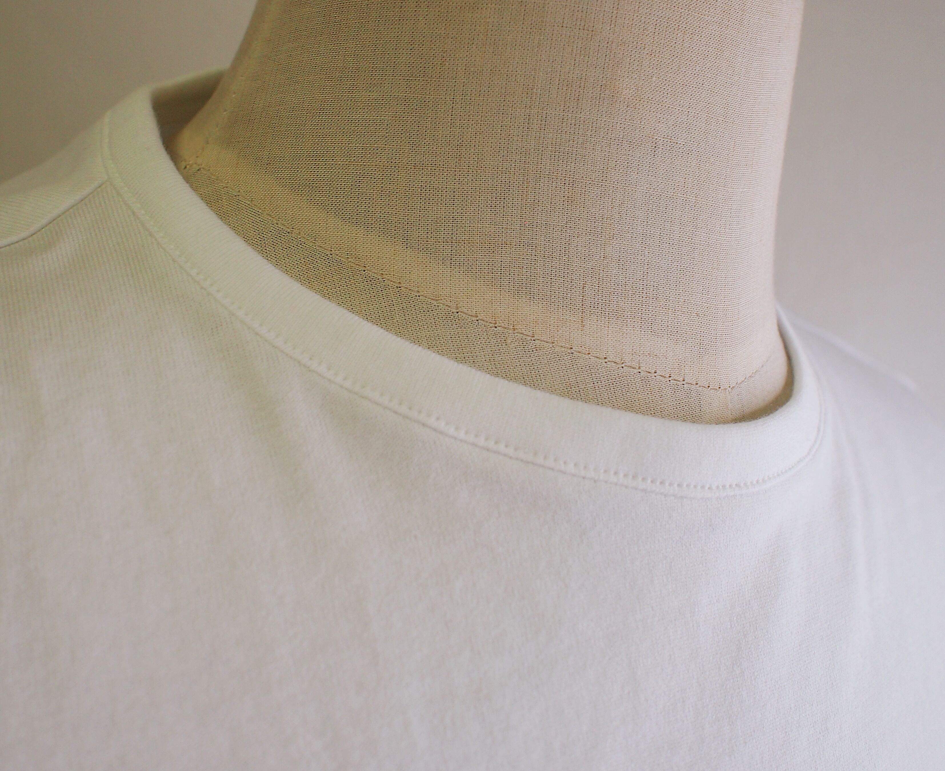使用したのは白い綿100%の20天竺、やや薄手で通気性が良く柔らかな肌触り、キレイ過ぎないナチュラルな表情のジャージ素材