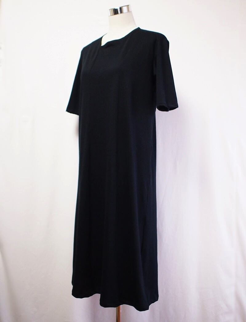セール20%オフ!たった一つの…レディス★オーガニックコットン★40/-天竺★ハーフスリーブ★アシンメトリーネック★ワンピース★フリーサイズ★ブラック