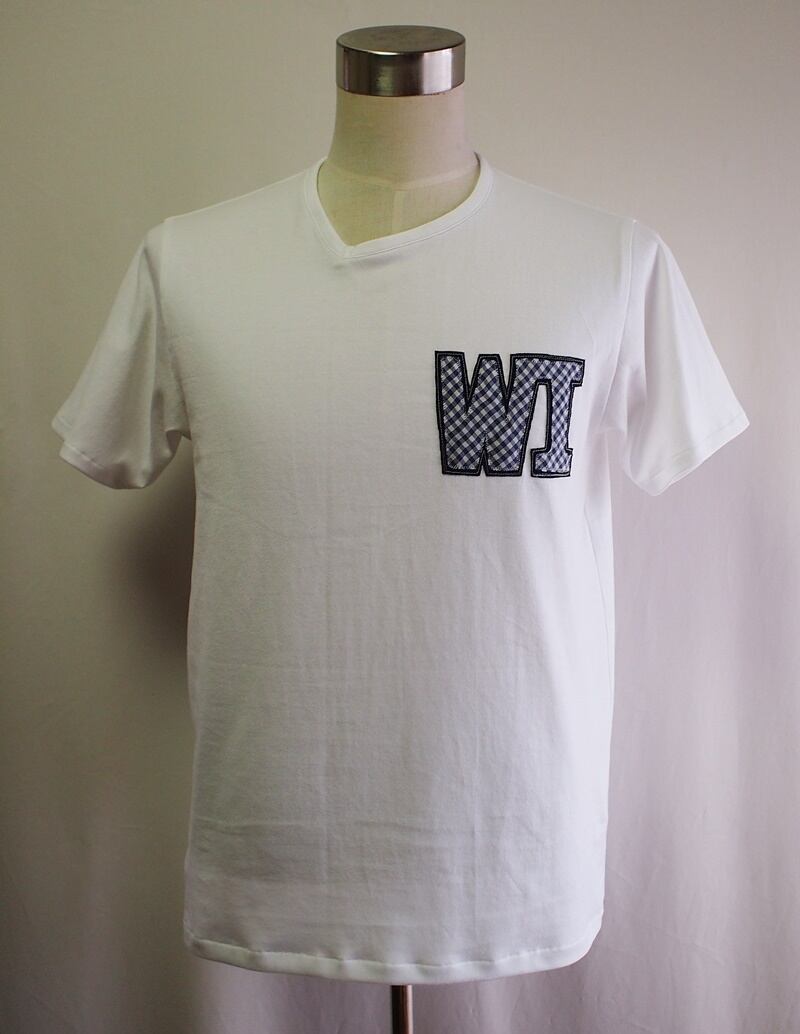 先月の8月1日、レディスでご紹介した「コットン 20天竺 WIロゴアップリケ アシンメトリーVネックT ホワイト」こちらと同じ素材でメンズのWIロゴアップリケアシンメトリーVネックTです。