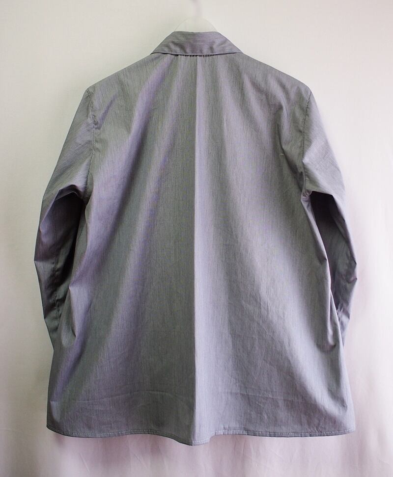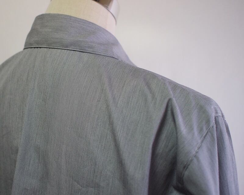 使用した素材は綿100%の60/2ブロード、白とブラックで髪の毛のように細く無地のようなヘアラインストライプ