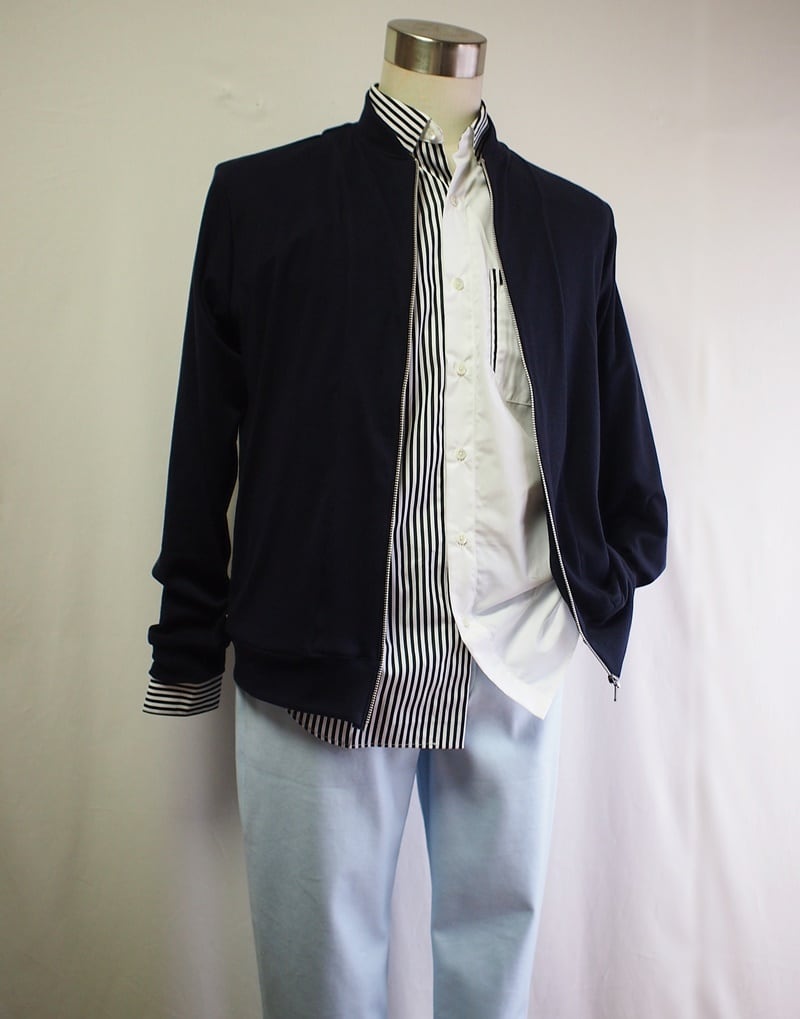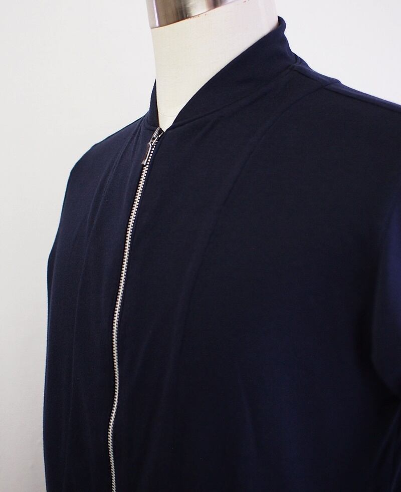 インナーでもアウターとしても使えるカーディガン感覚のブルゾン、ソフトスムースジャージーのジップアップジャケットです。
