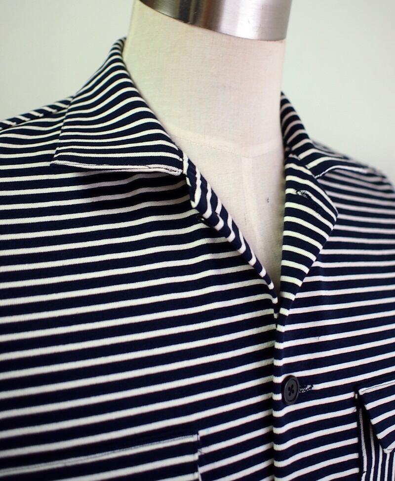 ボーダー柄のジャージ素材でシャツ型ジャケット