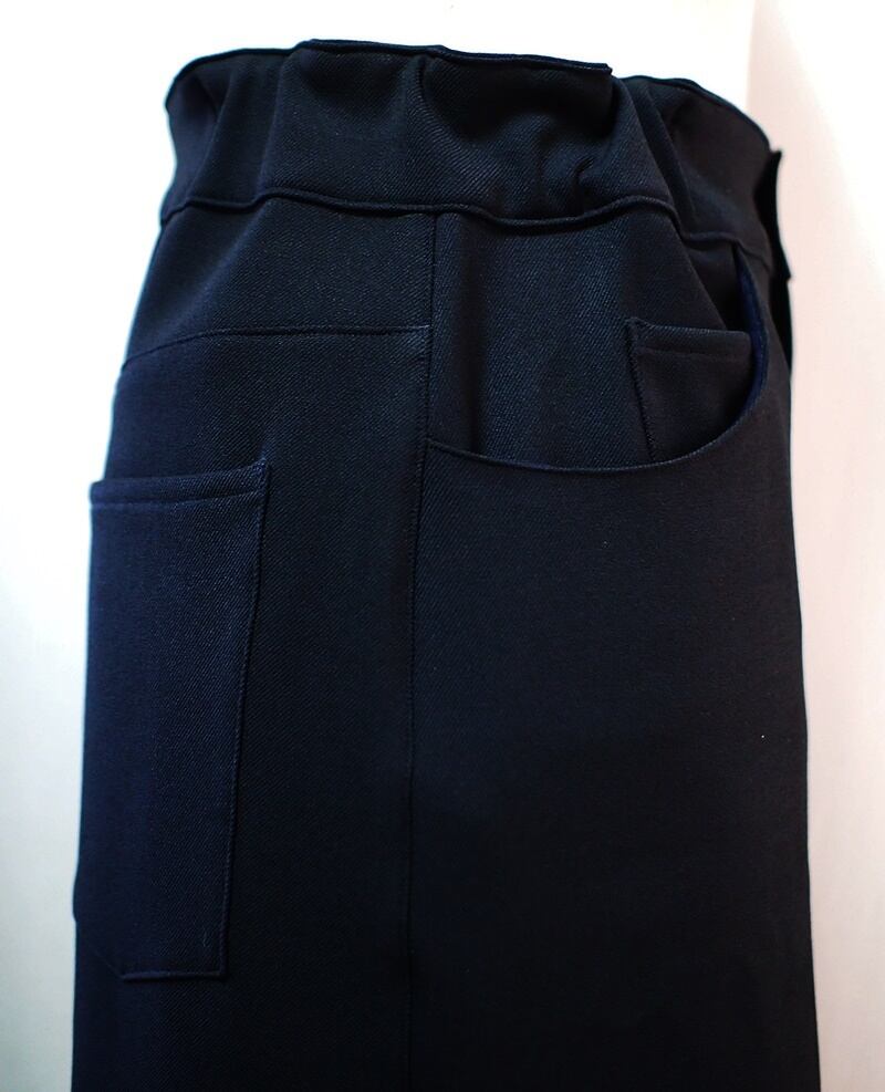 右腰ポケットの中にコインポケット付けた5ポケットなどジーンズのようなウエストディティール