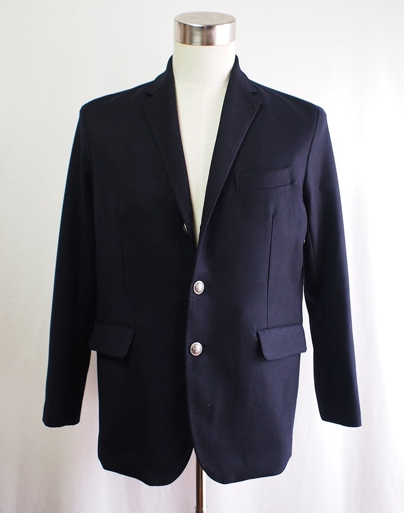 前々回にご紹介した「ウール/ポリウレタン混 ストレッチサキソニー 銀ボタン テーラードジャケット ダークネイビー」