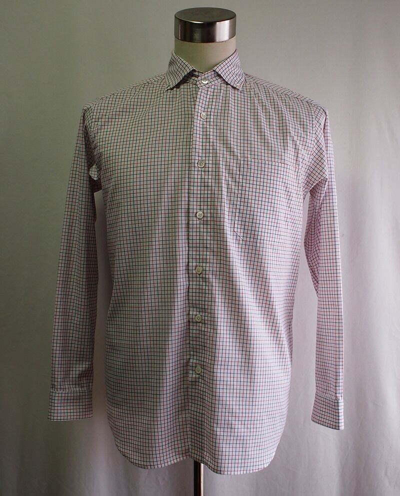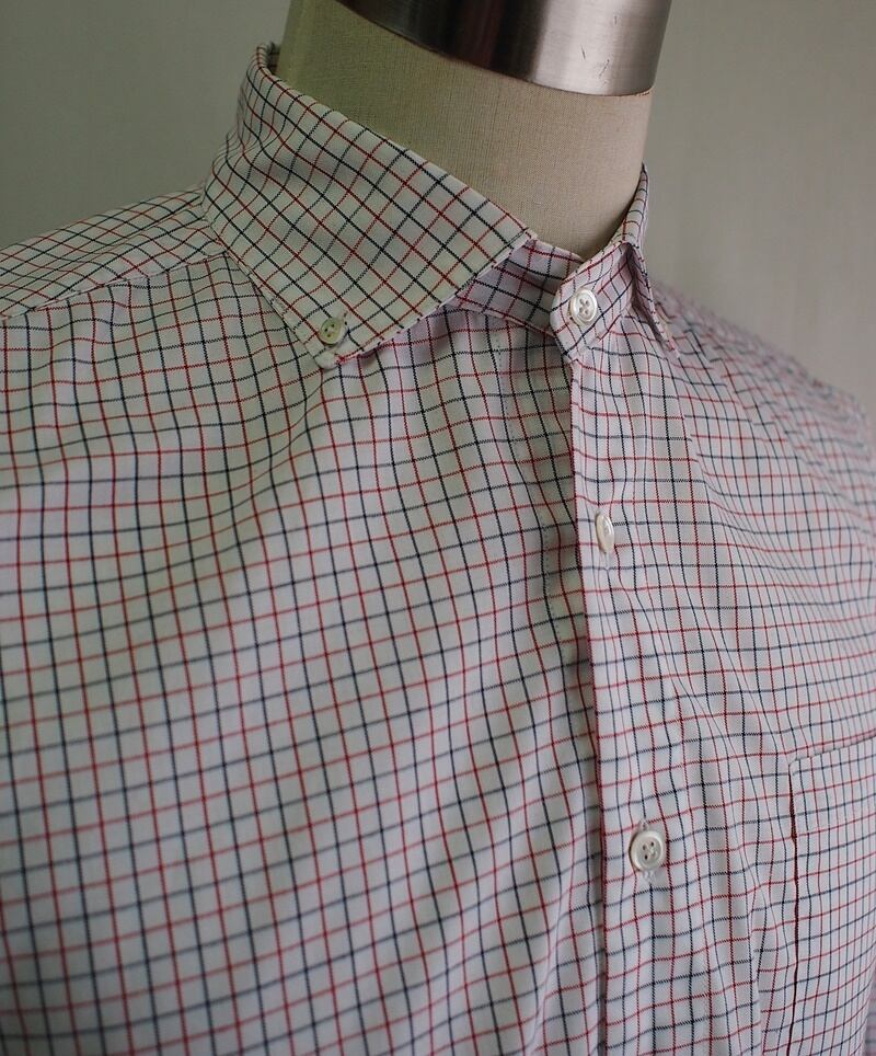 使用した生地は播州織のタッタソールチェック、綿100%の平織り素材で厚くも薄くもないシーチング素材程度のシャツとして一年中使える生地
