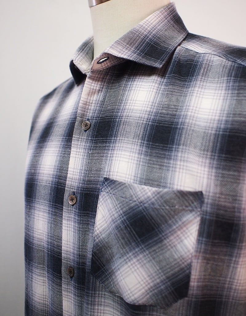 春らしいオンブレチェックのセミワイドカラーシャツ