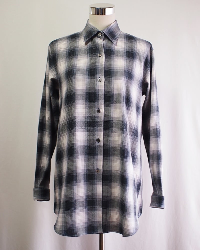 前回メンズでご紹介した「コットン 強撚ツイル オンブレチェック セミワイドカラーシャツ ホワイト×ダークネイビー×グレー」こちらと同じ素材を使用